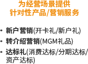 提供包含營(yíng)銷(xiāo)策劃 / 技術(shù)開(kāi)發(fā) / 運(yùn)營(yíng)管理 / 產(chǎn)品供應(yīng) / 售后服務(wù)的全鏈條服務(wù)支撐營(yíng)銷(xiāo)禮品